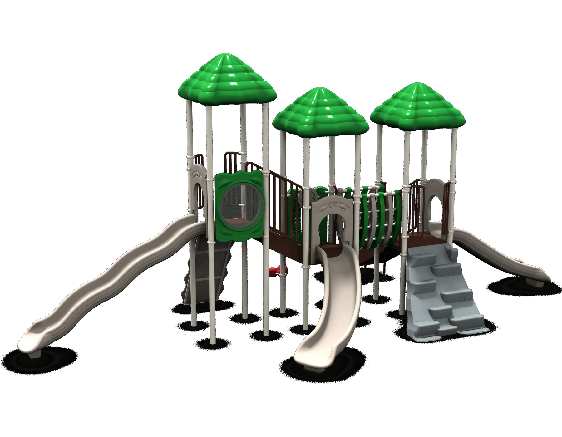 Kids can climb, balance, and explore as they ascend the Vine Climber, cross the adventurous Bone Bridge, and give the Ship’s Wheel a playful spin before racing down the thrilling 6’ Wave Slide. For an alternate route, children can tackle the Deluxe Rock Climb and enjoy the 4’ Curved Slide or Straight Slide for a different sliding experience.