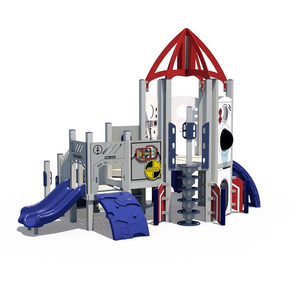 The Space Themed Outdoor Playground is a commercial outdoor playground designed to combine imaginative, space-themed play with active movement for children ages 2–12. Ideal for schools, parks, and community spaces, this rocket-inspired structure delivers high play value within a compact footprint while encouraging creativity and exploration.
