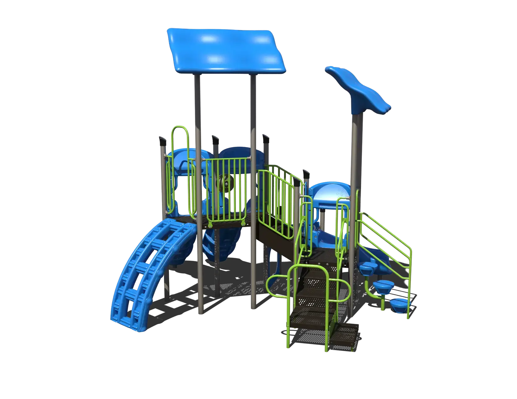 The PS3-71308 is a compact commercial playground designed to deliver high play value for a wide age range in a smaller footprint. Ideal for children ages 2–12, this structure is well suited for parks, schools, churches, municipalities, and residential communities that need inclusive, versatile play equipment.