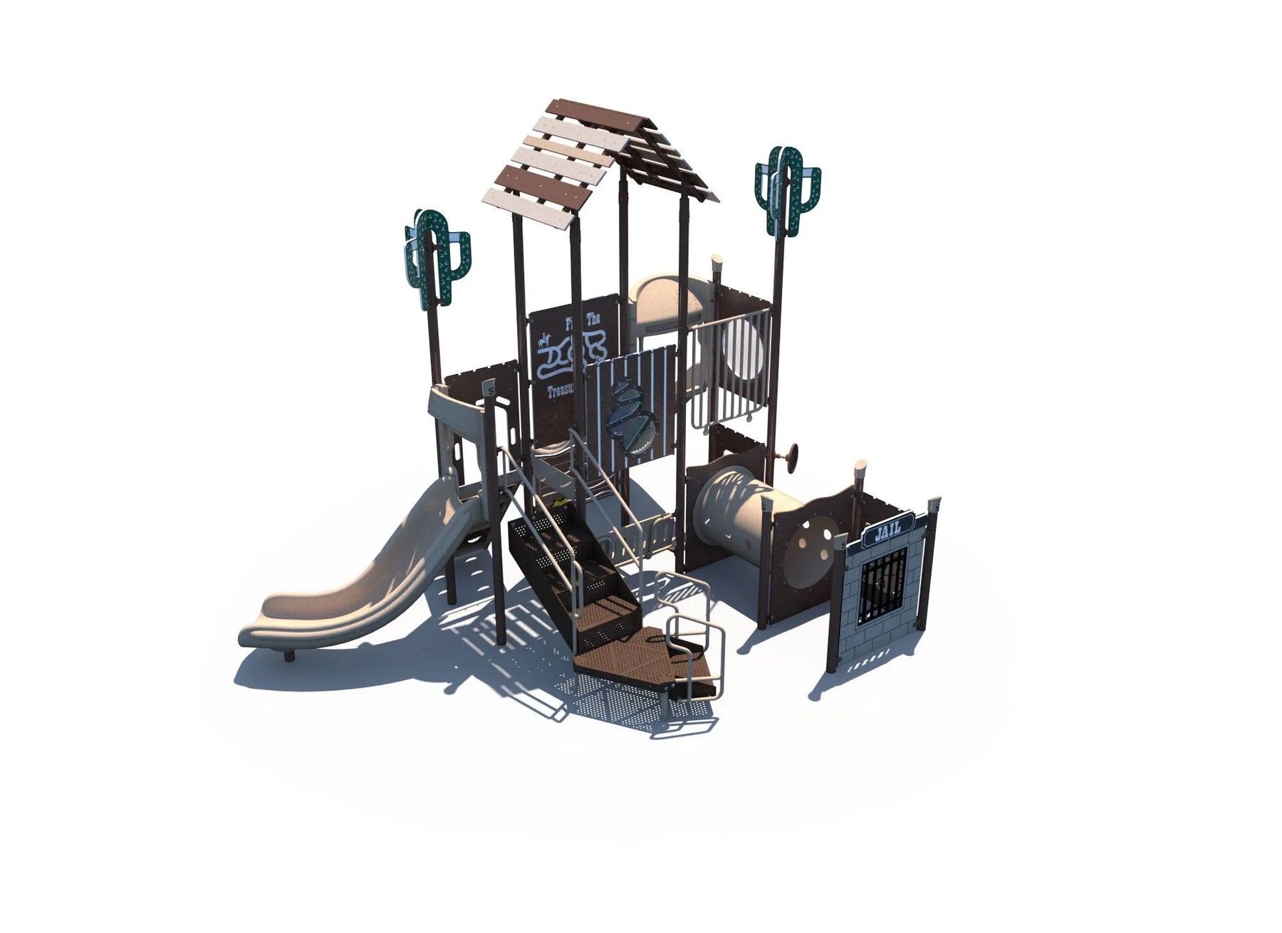 Little cowboys, cowgirls, and outlaws-in-training will love stepping into the saloon and jail, sparking endless role-play fun and dramatic play scenarios. Cactus post toppers add a desert flair, while thrilling slides, a unique horseshoe climber, and interactive play panels encourage climbing, exploring, teamwork, and creativity.