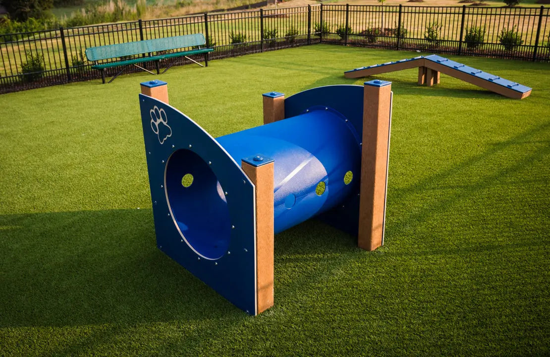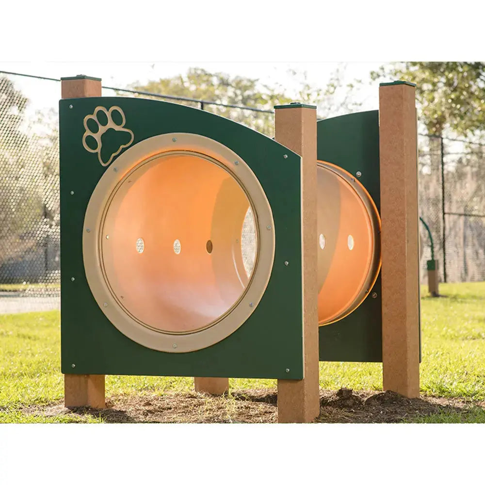 The Dog Log Tunnel is a versatile and inviting feature that makes a great addition to any outdoor dog park. Designed for dogs of all sizes and confidence levels, this agility-style tunnel encourages exploration, movement, and imaginative play. Dogs can choose to walk through the tunnel as a fun challenge or relax inside for a shaded break from the sun, making it both an active and restful element within the park.