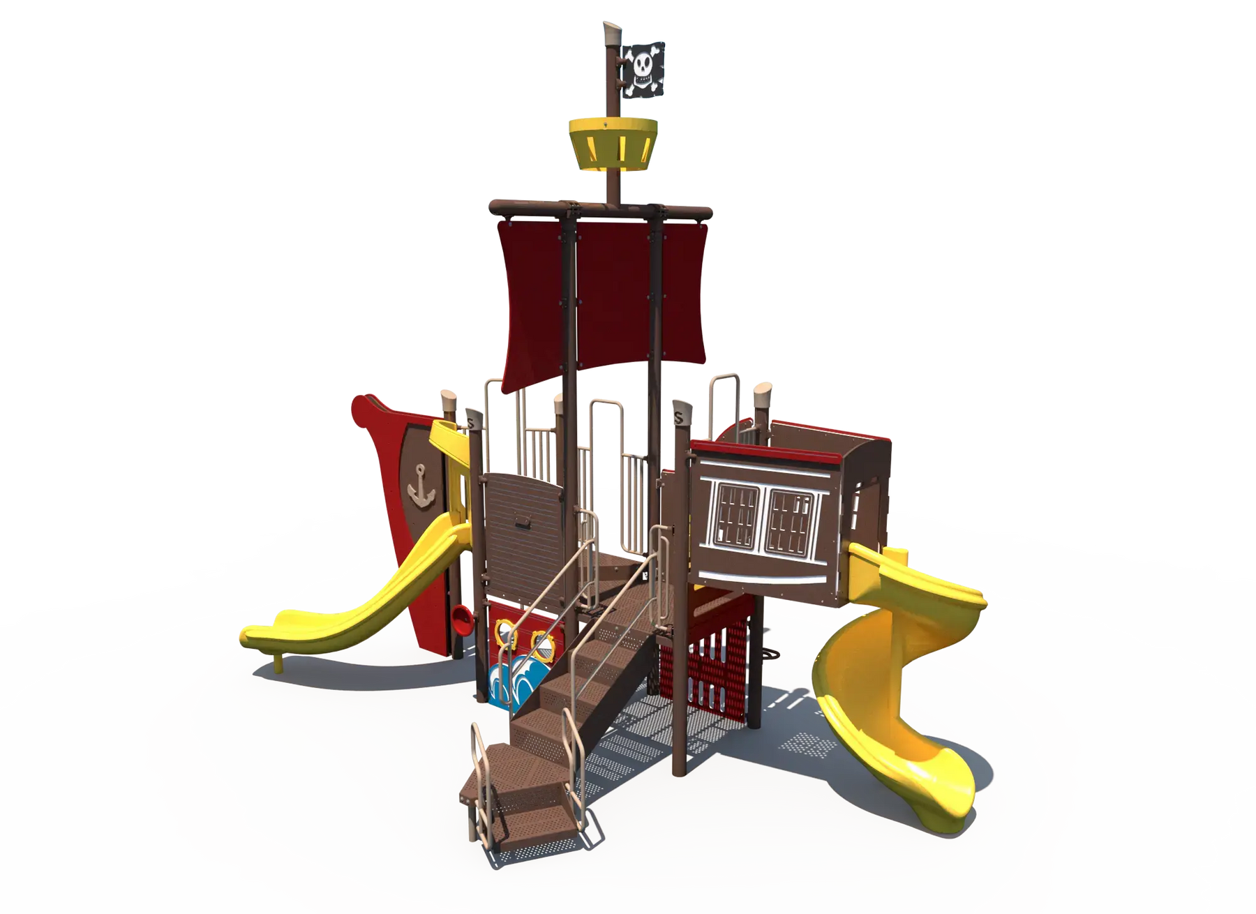 This pirate ship playground is an excellent fit for elementary schools, parks, HOAs, churches, and community spaces seeking a visually impactful centerpiece that drives engagement and repeat use. Its themed design also enhances the overall identity of a playground, making it more memorable and inviting for families.