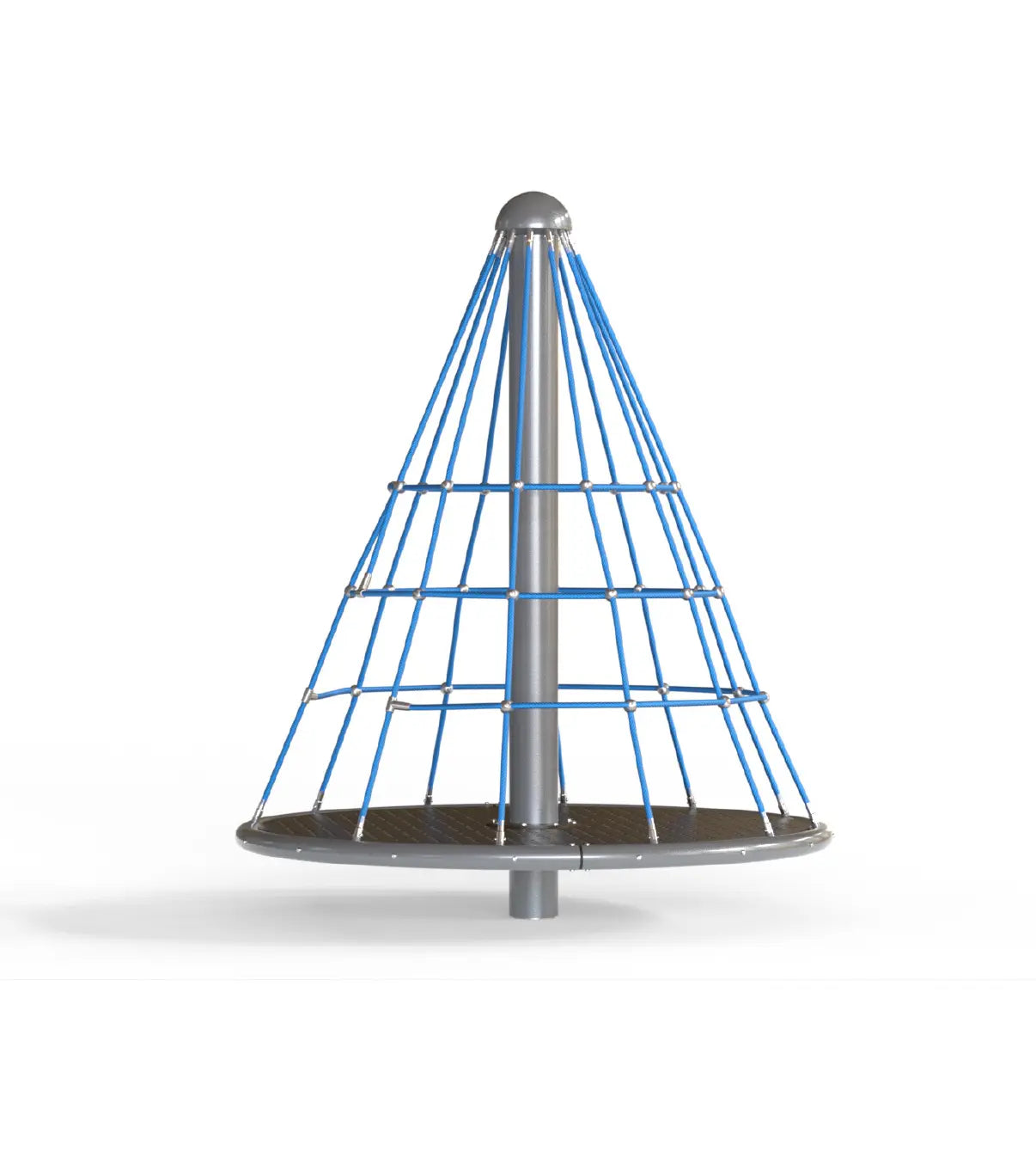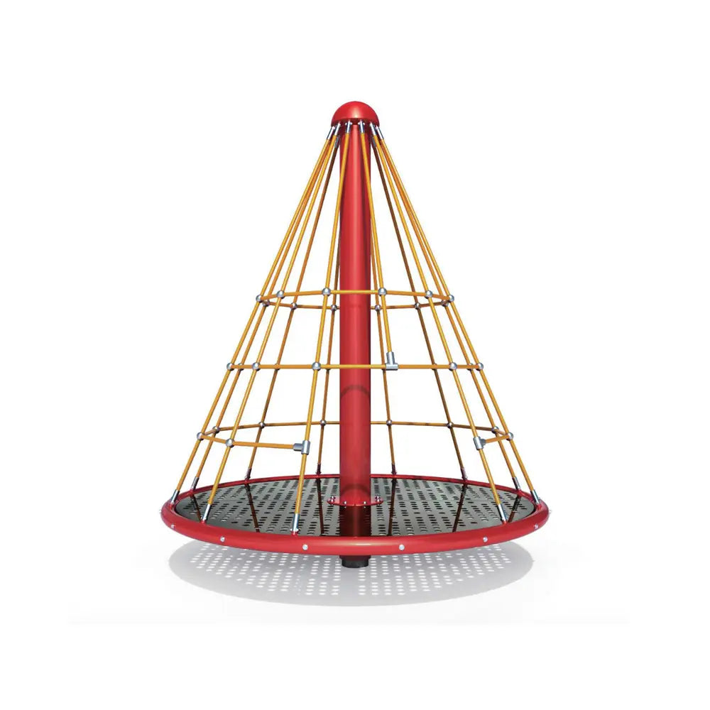 The Ascend Web Whirl combines a net climber and a merry-go-round into one dynamic play event. Designed for children ages 5-12 years, this spinning rope climber encourages physical strength, balance, coordination, and cooperative play. Children can climb the central net structure while it spins, creating an exciting multi-sensory experience that keeps them engaged and active.