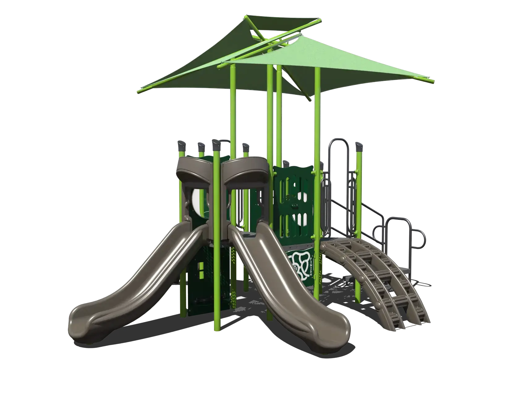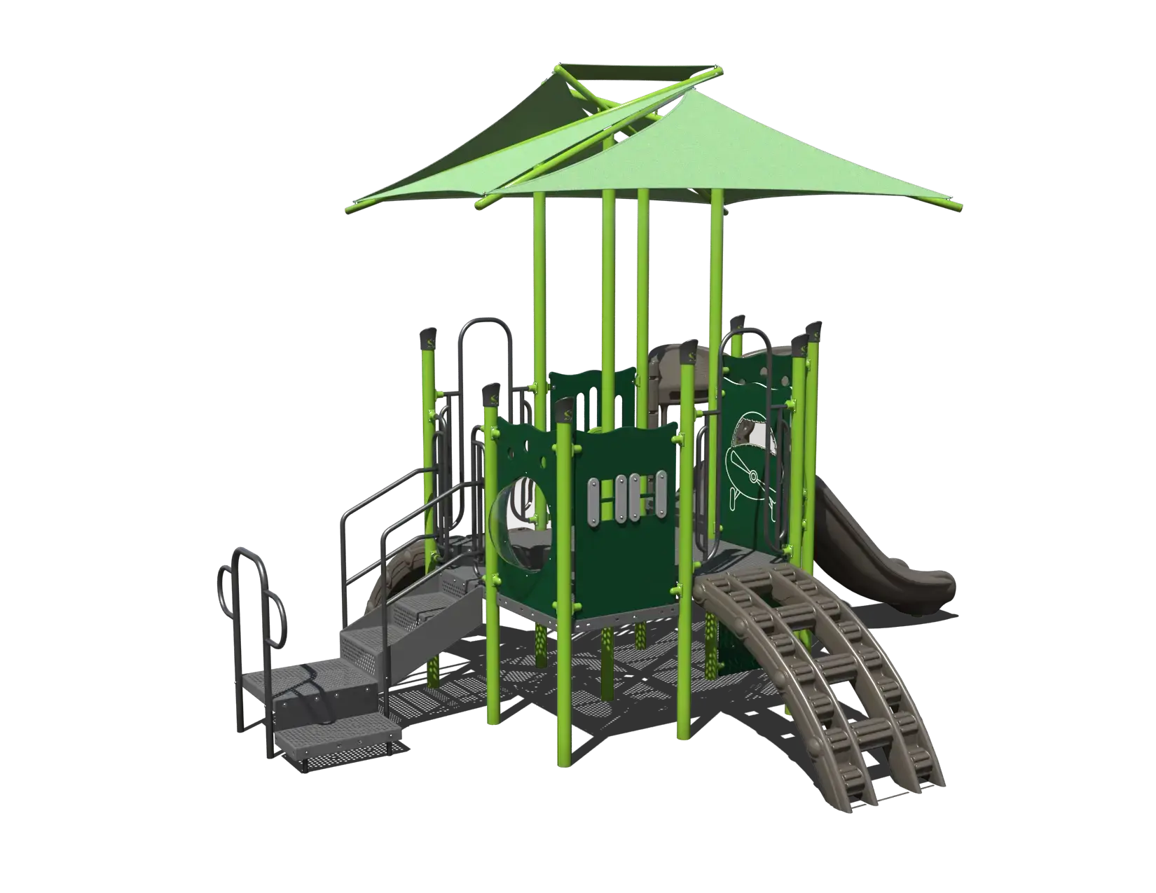 The Seabreeze Summit Outdoor Playground is a shaded, steel-constructed play structure designed to support safe and engaging play for children ages 2-12. Its integrated shade canopy helps protect children and equipment from sun exposure, making it an excellent choice for Texas schools, parks, and community recreation areas.
