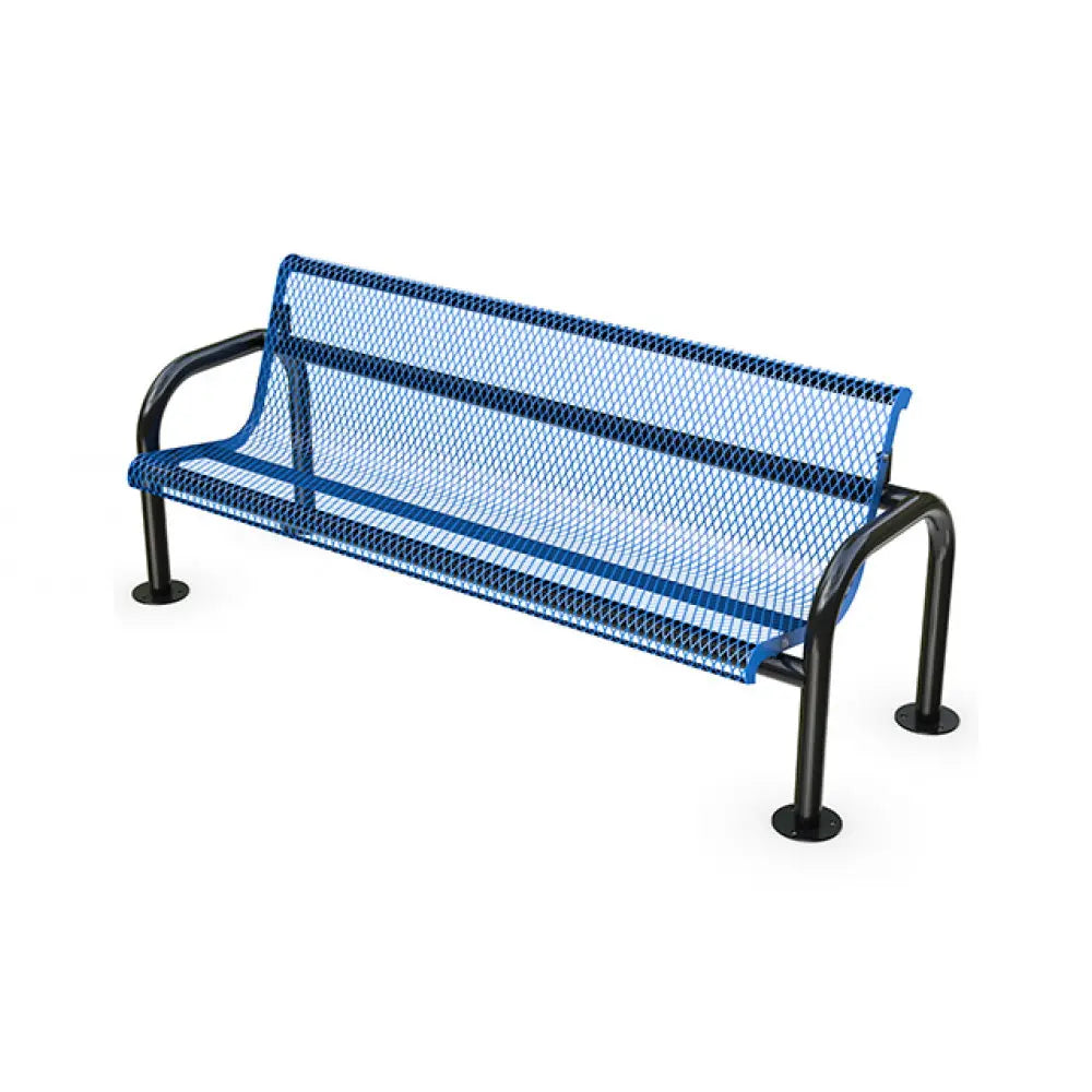 Constructed in the USA from heavy-duty 3/4″ #9 expanded metal and supported by a 2 3/8″ curved, powder-coated steel frame, this bench is built to withstand frequent use and outdoor exposure. Integrated armrests and a contoured back provide added comfort for extended seating. Add-on bench sections are available and connect seamlessly through a shared armrest, allowing facilities to expand seating capacity as needed. With multiple mounting options, the Modern Standard Bench with Back is a versatile choice for business parks, shopping centers, transit hubs, airports, and other public spaces.