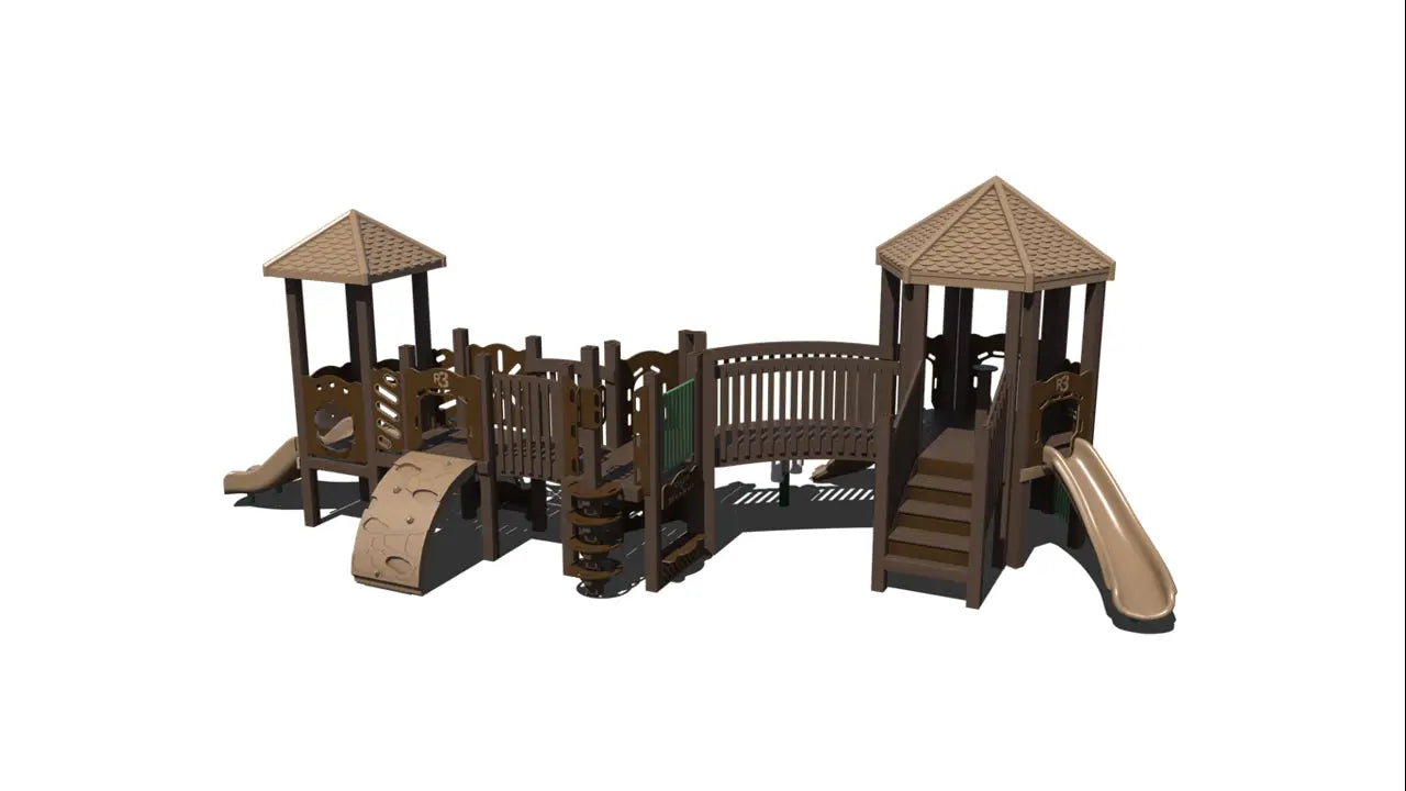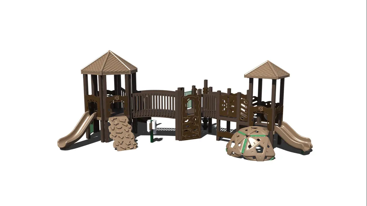 This recycled playground is commonly incorporated into professionally designed playgrounds as a central structure within a larger play area. Its ADA-aligned design and durable construction allow it to integrate seamlessly into commercial playground layouts that prioritize accessibility, sustainability, and long-term performance.